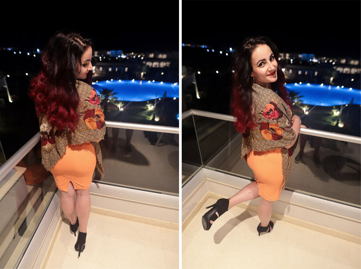 Tenhle šátek značky Gucci jsem dostala loni k narozeninám, nebyl samozřejmě úplně nejlevnější, ale byla to skvělá investice! Je moc příjemný, velmi jemný, po hodně nošeních stále jako nový (žádné vytahané nitě atd. což je vzhledem k materiálu neskutečné!) ale v zimě opravdu zahřeje a kromě toho ho unosím po celý rok, protože se hodí i jako přehoz na šaty! (večer už bylo občas chladněji, s tím jsme počítali, byl už přeci jen skoro konec září)